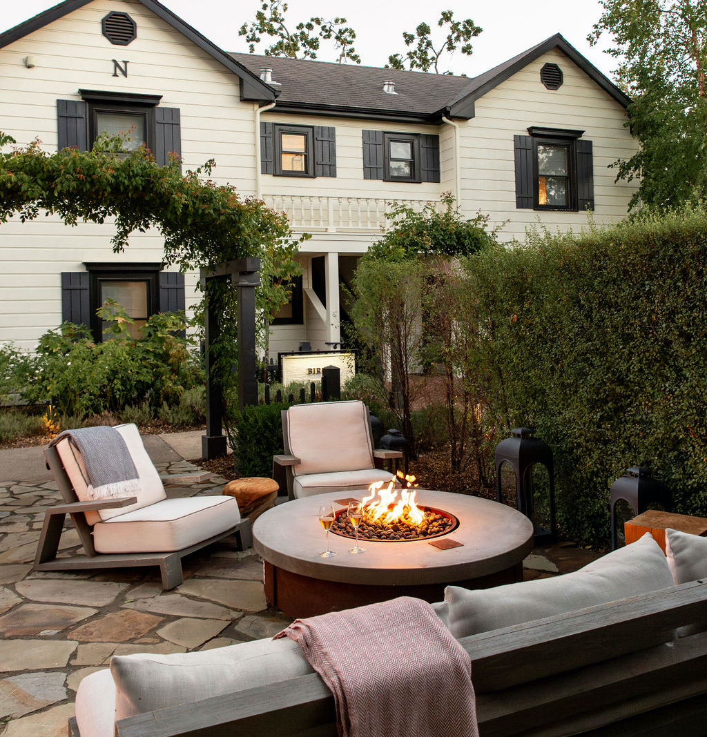 “The property consists of the lobby (which houses a coffee counter, American-style bar, and their on-property restaurant) and then a collection of small farm-style buildings that make up the spa, rooms, and suites. All of it is connected by beautiful gardens and lush walkways, which are immaculately kept. I visited in early October, so thousands of pink and white roses were in bloom, which made for the most stunning photo opps, if that’s your thing. The weather in Sonoma is typically gorgeous in the fall, so I really got to enjoy all the communal outdoor spaces—especially the fire pits, where I drank coffee in the morning and a glass of cab before bed.”