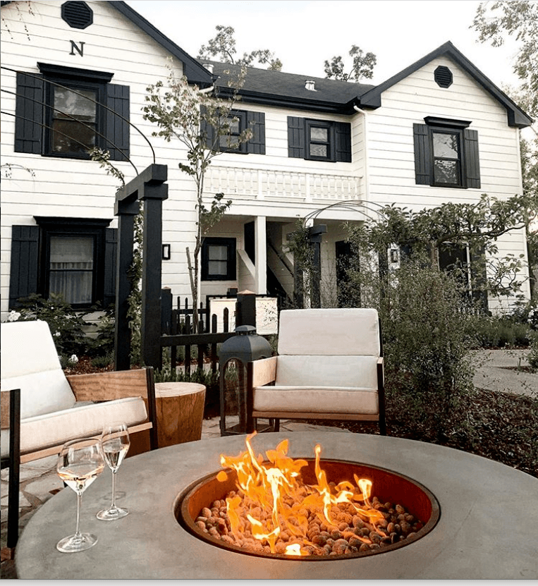 Situated within the heart and soul of the property grounds, this communal firepit and al fresco lounge is surrounded by heritage espalier-trained apple trees and majestic camphor and oak trees that lend dappled shade, just enough privacy and beautifully-framed views onto the winding pathways and neighboring cottages.