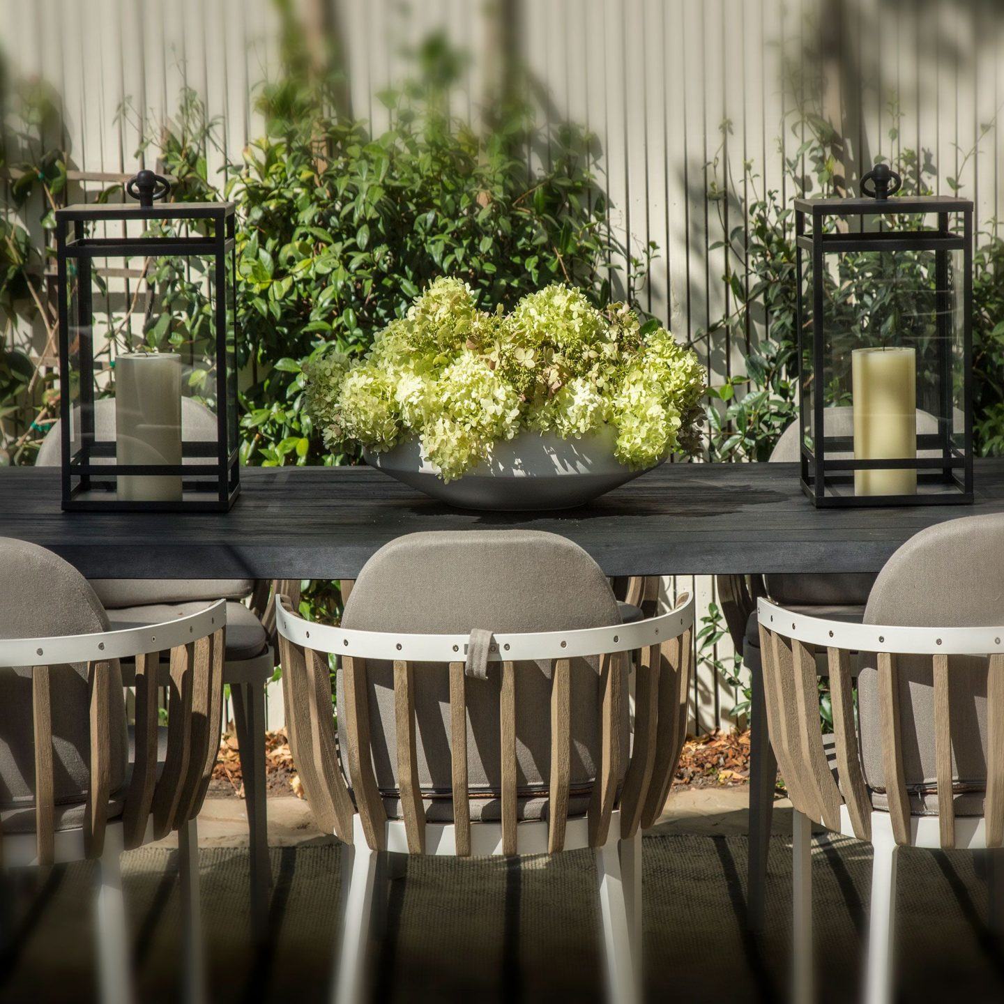 Private patio with large chef’s table surrounded by lush foliage. Offers a quiet, al fresco retreat to the majestic trees, fresh air, and dappled sunlight. - Outdoor Shower